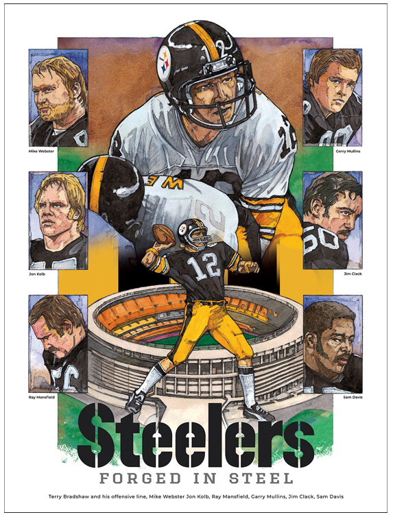 Terry Bradshaw and his 1970's Offensive Line, Mixed Media, 24" x 18"